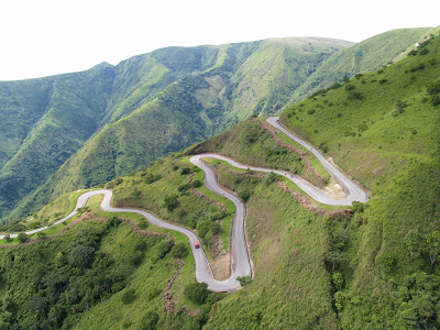The intestinal road is the road that brings one up the mountain to Obudu Cattle Ranch. The road network is spiral and it gives a zig-zag view from the top