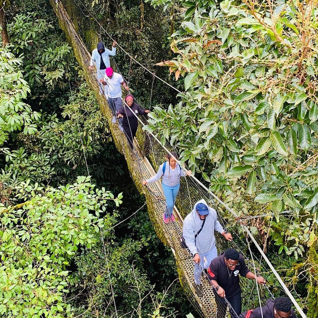 The Canopy Walkway is a 100m swinging bridge suspended above the forest
